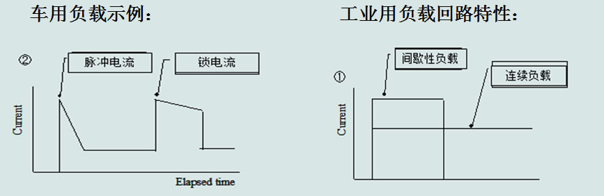 車用負(fù)載回路的脈沖電流對(duì)熔斷器的沖擊較大,工業(yè)品往往會(huì)無(wú)法滿足整車的壽命要求。