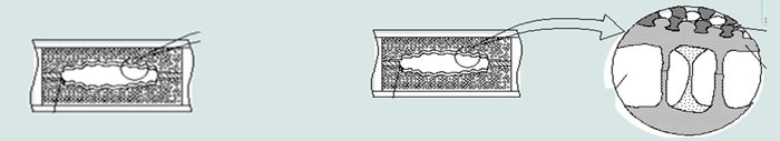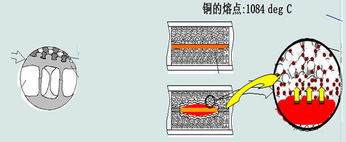 石英砂需充分吸收熔斷后的液化體并與之 結(jié)晶,達(dá)到完全阻斷的效果,如右下圖:
