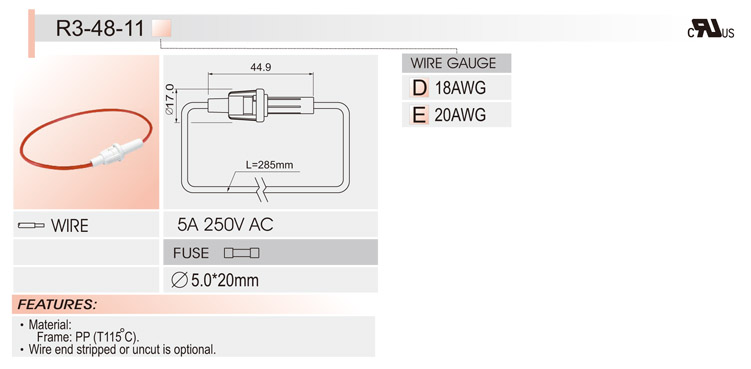 5*20拉線盒保險(xiǎn)絲座 R3-48 UL CSA 10A250V