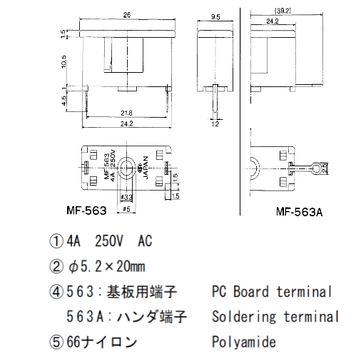 5*20 PCB板安裝保險(xiǎn)絲座 MF-563 10A250V
