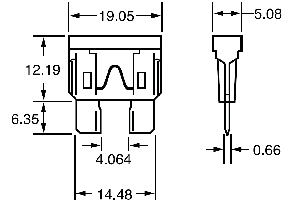 Interrupting Rating: 1000A @ 63 VDC Voltage Rating: 63 VDC Operating Temperature Range: -40?C to +125?C Terminals: Ag plated zinc alloy Housing Materials: PA66 Complies with: Meets SAE J2077 ISO 8820 UL 248 Special Purpose Fuses Time-Current Characteristics