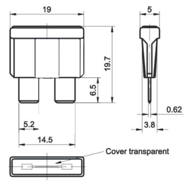 中號高壓插片保險絲ATC-NL5~6-XXA63V/80V/125V UL Physical view