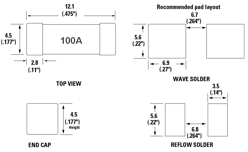 ? Available in ratings of 1 to 100A? High interrupting rating -600A@75VDC? Very low cold resistance,temperature rise, and voltage drop? High inrush/surge current withstand capability? Surface mountable high current fuse? UL 248-1 and UL 248-14 recognized? Conforms to IEC/EN 60127-1and IEC/EN 60127-7