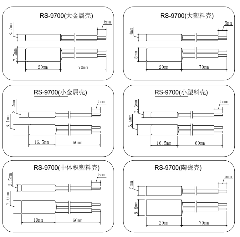 注:1.導線長度可以根據(jù)用戶要求訂做;2.該產(chǎn)品外殼與產(chǎn)品電路中的底座支架直接接觸,故金屬外殼產(chǎn)品在接入電路時其外殼會帶電,所以在安裝時請使用出廠配套的絕緣套管。
