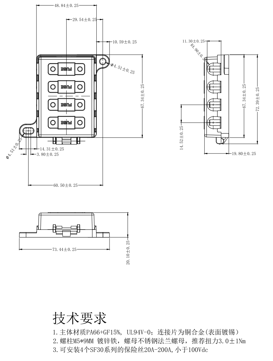 4路小號(hào)叉栓保險(xiǎn)絲座ANS-B4