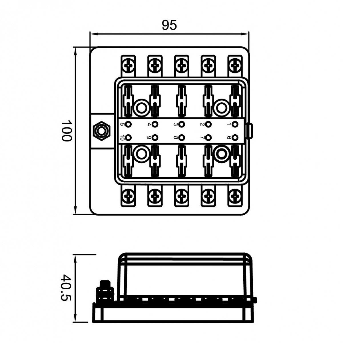 #10-32 threaded studs (100A max. tested by 4pcs. 25A. load)